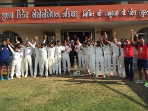 Saurashtra were off to a shaky start right from the beginning with their openers failing to provide a flying start while Karnav Rathod at no.3 top scored with 40 for his team where most of the batsman struggled. Saurashtra were bundled out for 181runs. Spinner Jugraj Mehta who has bowled well throughout the tournament once again delivered in a high pressure match as he took 3/30 in 18.2 overs with 11 maidens. Aayush Mishra also bowled well taking 3/44 in his 10overs.