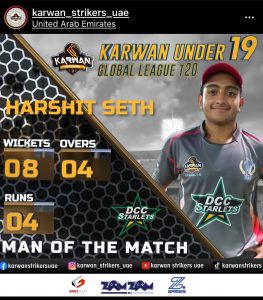UAE’s Harshit Seth bags a record double hat-trick in Karwan U19 Global T20 League’21