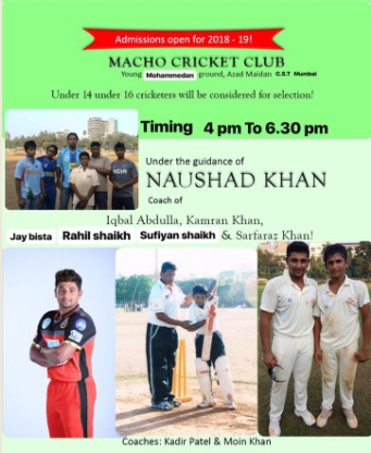 MACHO CRICKET CLUB is a Cricket Academy is in under the Guidance of  Naushad Khan in Mumbai.