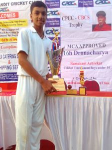 Ayush Jethwa who is just 14yrs old and studies in SVIS School Borivali in 8std has already played in numerous tournaments this year. From Giles Shield, Mahindra Selection shield to Payyade selection trophy to Harris shield to even the Kanga where players almost twice his age and experience play. Ayush whose favorite shot is an elegant straight drive has consistently scored runs and taken wickets at almost every game and every tournament he has got to play. And what’s more, he has fired at the right time when his team needed him the most.