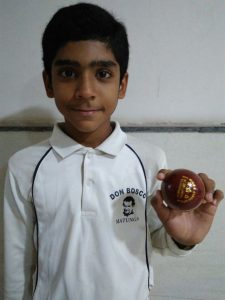 Batting in the 2nd innings, Parle Tilak were least aware of the storm which was unleashed on them as their left-arm spinner Chris Britto came up with match winning bowling figures of 8/8 in 9.3overs(7maidens). The tight bowling coupled with excellent line and length enabled chris to single handedly demolish the entire batting line up of Parle Tilak which eventually helped his team Don Bosco win the match by an innings. Chris has certainly been a revelation with as many as 28wkts so far in the Giles Shield.