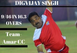 His team Amar CC was all out for 97 runs and they did lost the match on 1st innings but Digvijay won the hearts of many. Digvjay Singh also achieved the best bowling figures across all divisions for this year’s Kanga breaking the record of Navi Mumbai SC quickster Bharat Shinde who took 8/10 vs Bluestar CC.