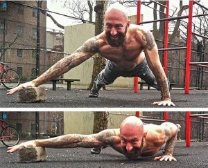 This is another exercise which looks cool and can help you a lot to achieve the single hand push up. In both these exercises one arm remains fully extended whereas the other arm does most of the pushing work. It is a good exercise to cure muscular imbalance. For instance if a normal push up loads both hands equally i.e. 50%-50% load on both hands, the archer/typewriter push up would load the bent arm with 80% whereas the straight hand takes only 20% load.