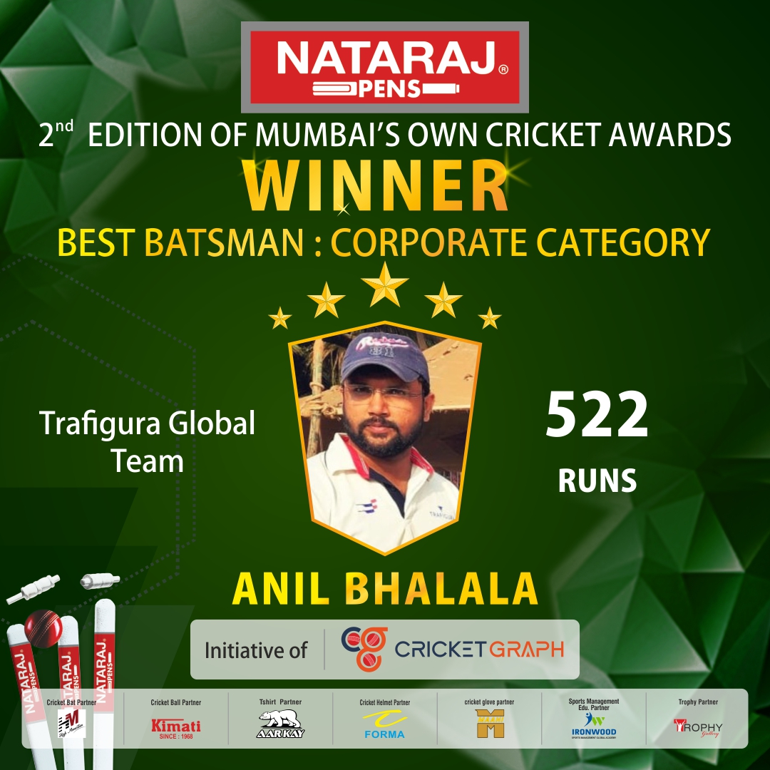 BEST BATSMAN WINNER – Anil Bhalala from Trafigura Global Team