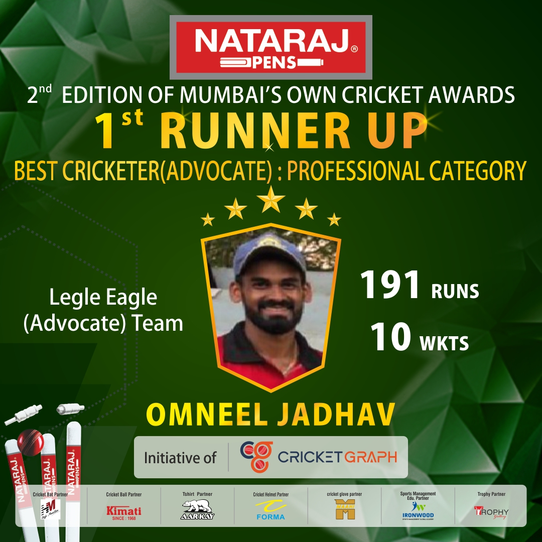 With 162 runs and 5 wkts in 4 matches, Omneel was a serious contender to bag the Best Batsman winner. However, Omneel won the 1st runner up award on the back of some impressive performances in the last 4 months.