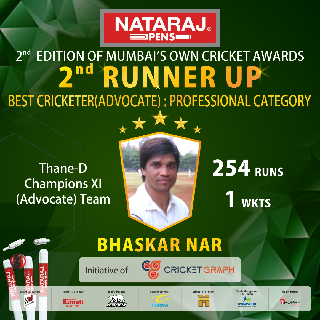 2nd Runner Up-Bhaskar Nar from Thane D Champions XI