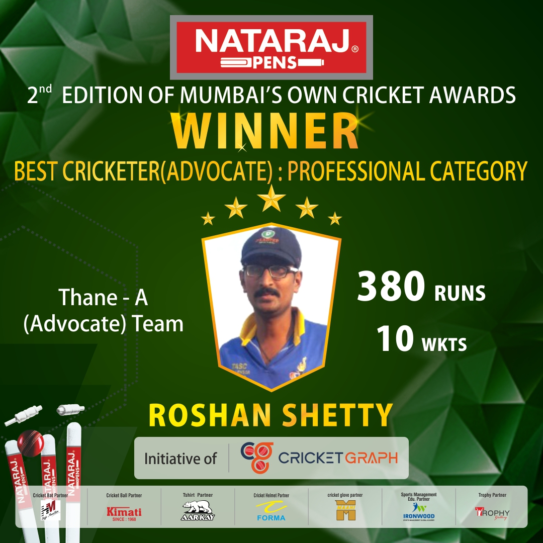 BEST BATSMAN Winner – Roshan Shetty from Thane Advocates A