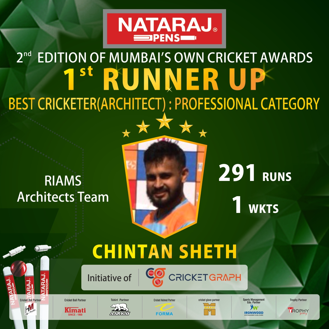1st Runner up Architect – Chintan Sheth from Royal Falcons Architects Team