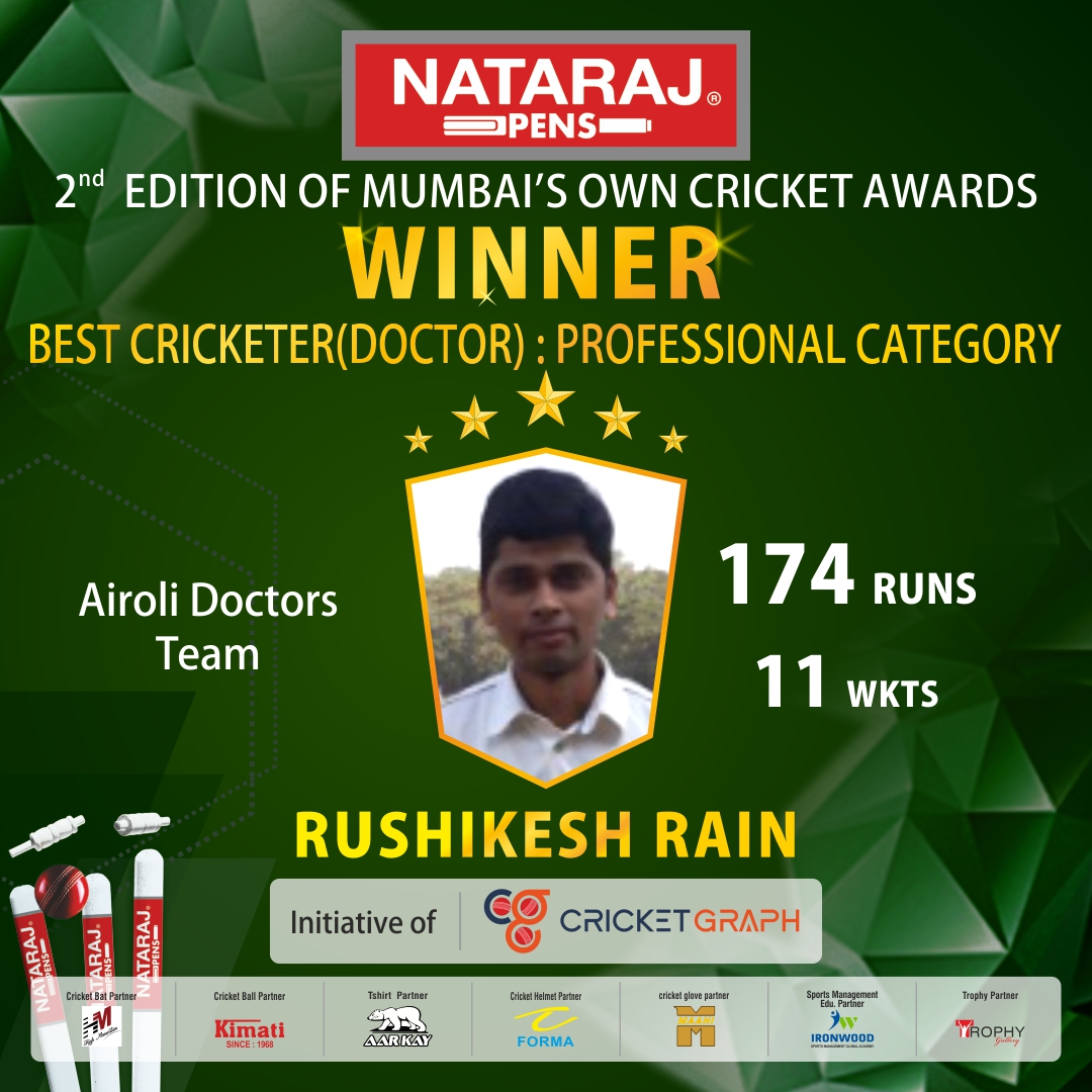 Rushikesh bagged the best batsman award amongst the doctors scoring 174 runs and 11 wkts in 5 matches.