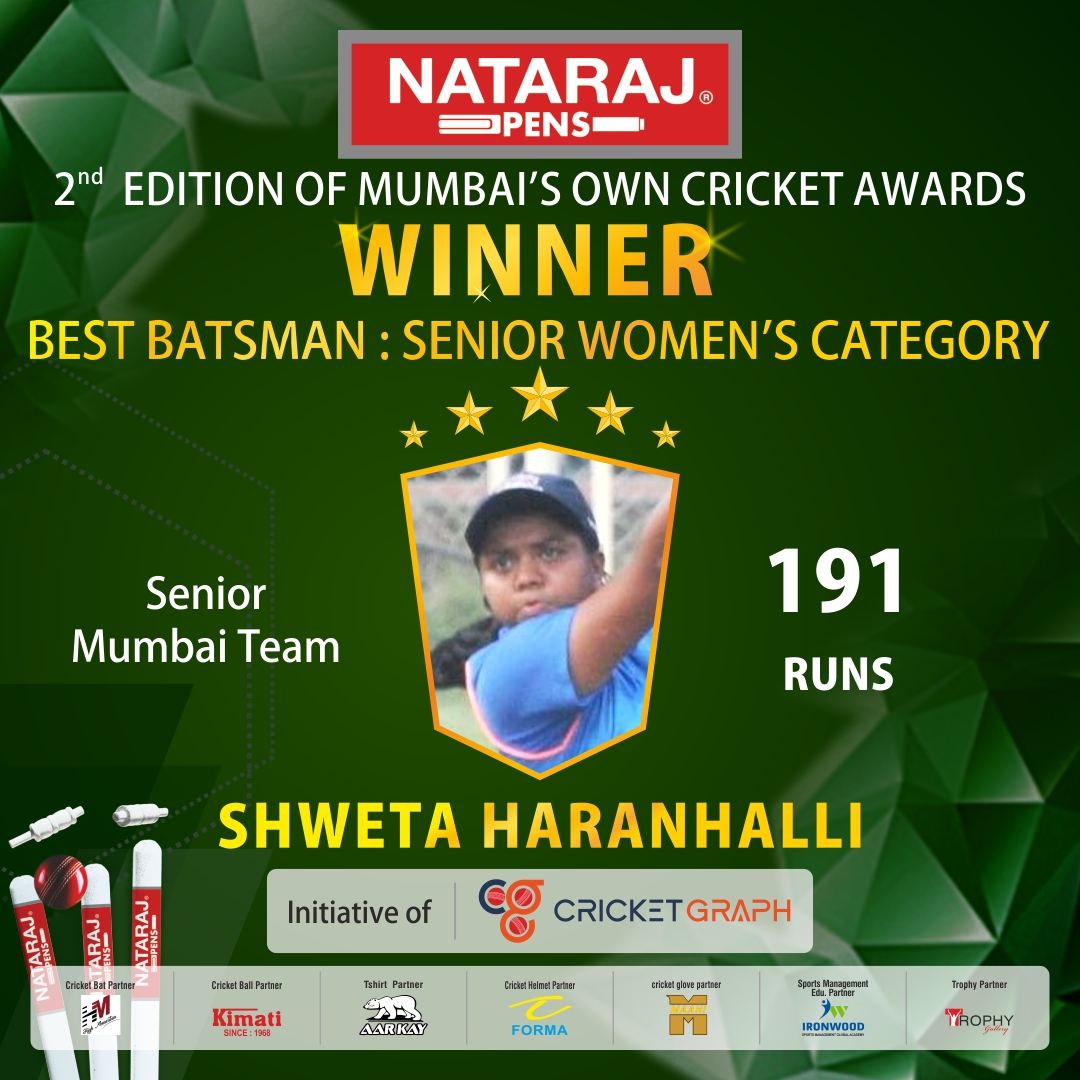 Shweta Haranhali from Mumbai U23 Team- Winner of U23 Category Best Batswoman