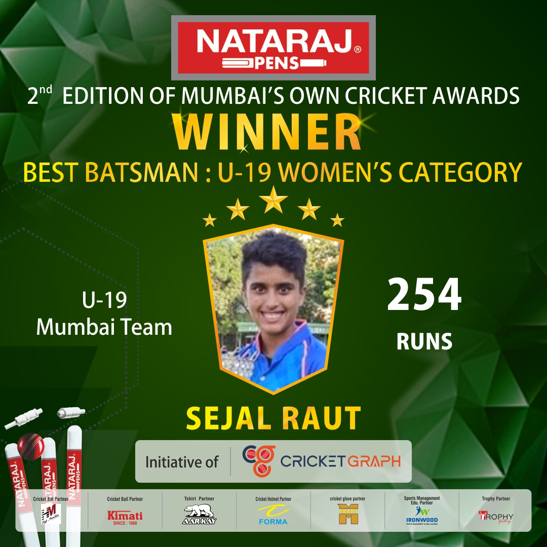 Sejal Raut from Mumbai U19 Team – Winner of U19 Category, Best Batswoman
