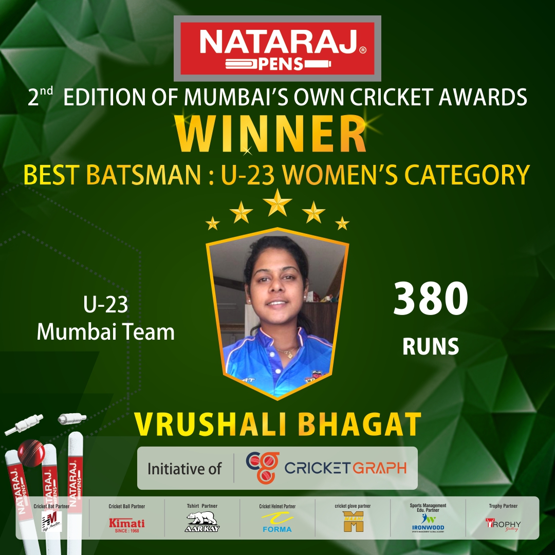 Vrushali Bhagat from Mumbai U23 Team-Winner of U23 Category Best Batswoman