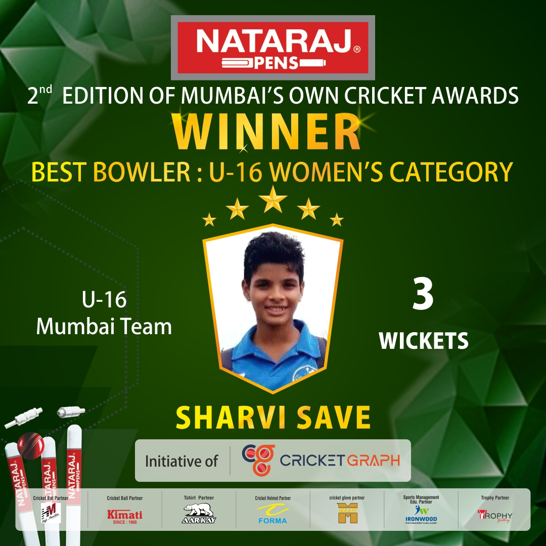 Sharvi Save from Mumbai U16 Team-Winner of Best Bowler in Mumbai U16 Category