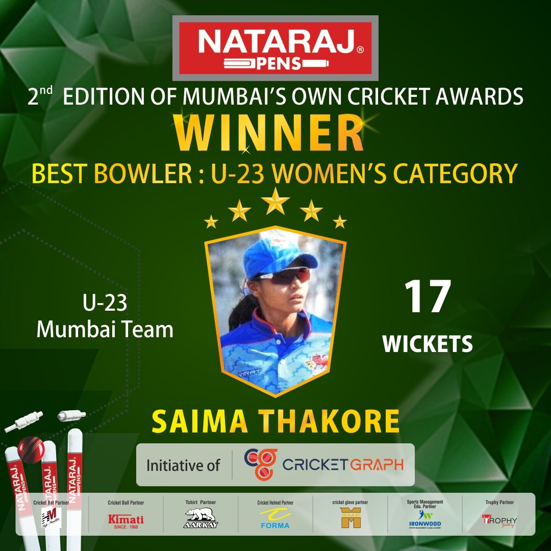Saima Thakore from Mumbai U23 Team – Winner of Best Bowler in Mumbai 23 Category