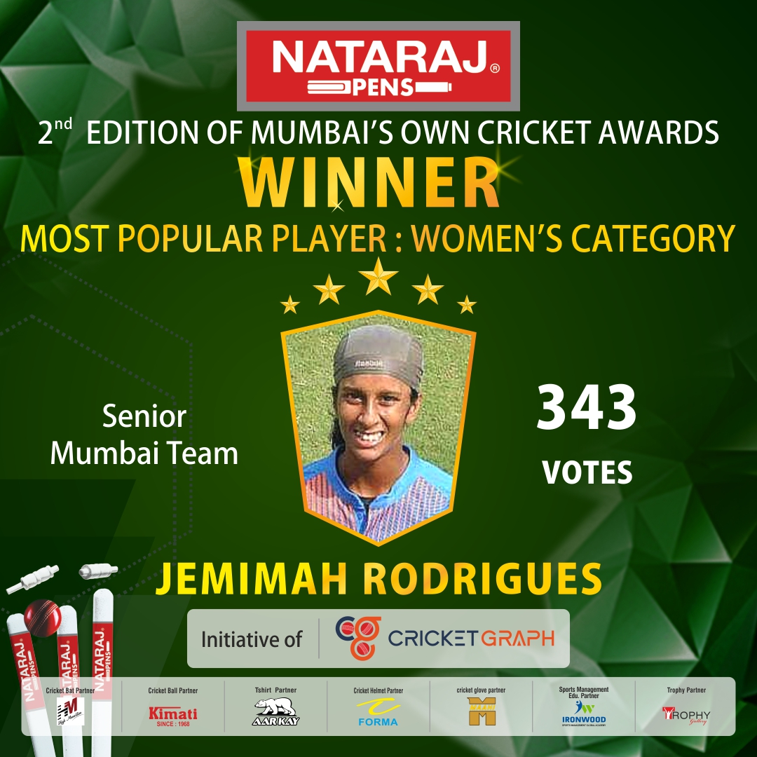 It must have been one of the easiest guesses for many as Jemimah is our Nation’s daughter now. Her attacking style of batting, some stellar knocks and her big sixes have made her popular worldwide in a span of just one year. She won the Most Popular Award with 343 votes to her name.