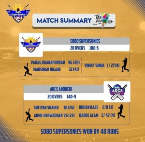 Sobo Supersonics won the match by 48 runs while prolific Parag was declared ‘man of the match’. Coach Umesh Patwal must be a happy man to see his player performing to the core at the big stage!