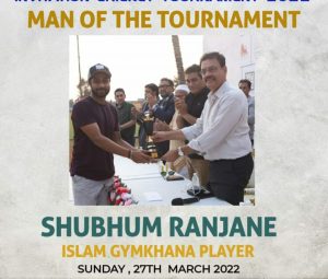 Into the all important finals of the 72nd Salarjung T20 Invitation Tournament played on 27th March. Islam Gymkhana after being put to bat first posted a total of 144/10 in 19.5 overs. All-Rounder Shubham Ranjane top scored with 36 runs off 34 balls while Sagar Udeshi with 2/12 in 4 overs was the pick of the lot. Apart from Sagar, Shams and Aqib also bagged two wickets each.