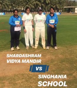 Singhania School Girls Thane in reply managed to score only 61/9 failing to keep up with the run rate. Off-spinner Vrushika Dontula bowled a stunning spell conceding mere 3 runs in 3 overs in a T20 match alongwith 2 wickets while Disha Chandak also chipped in with 2/22 as Shardashram girls took the trophy home winning the all important finals by 75 runs.