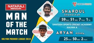 Shardul Khanolkar (59) & Aryan Bohra (25) steer Santosh Sports Cricket Academy to a win in the Kalyan Premier League’19