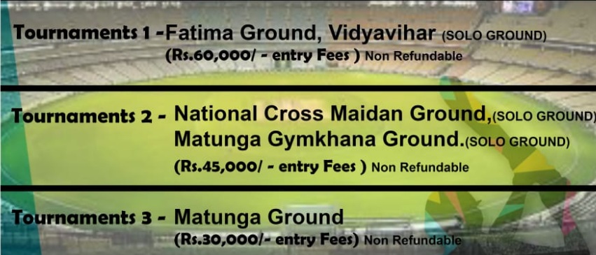 Tournament 2Rs.45,000/- Entry Fees For Per Team ( National Cross Maidan Ground, Matunga Gymkhana Ground) Solo Ground | ₹45000 | Book Now |