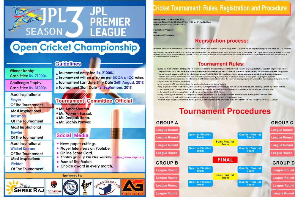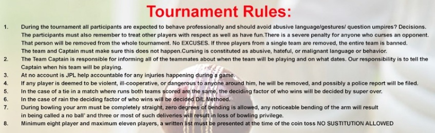 JPL PREMIER LEAGUE 2019 SEASON 3 DELHI Cricket Tournament has been Starting from 1st Sept 2019. at Delhi with following facilities.