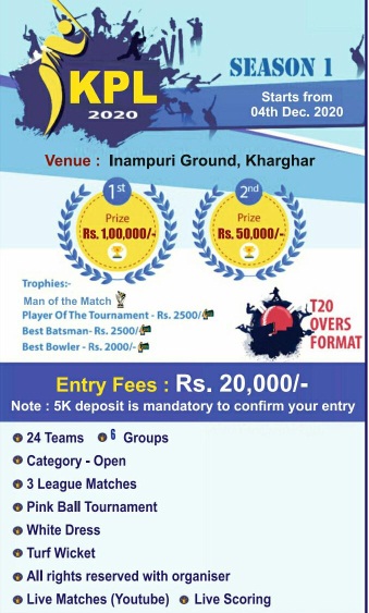 KPL ORGANIZED BY KPL 2020 Tournament Season 1 From 4th of December 2020.