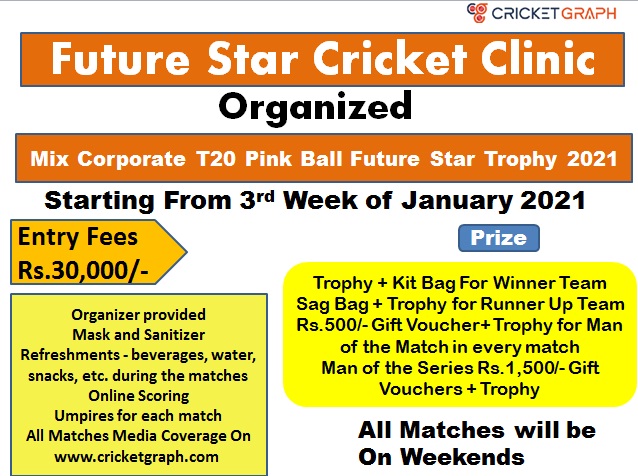 Future Star Cricket Clinic Organized Mix Corporate T20 Pink Ball Future Star Trophy 2021. Starting From 3rd Week of January 2021