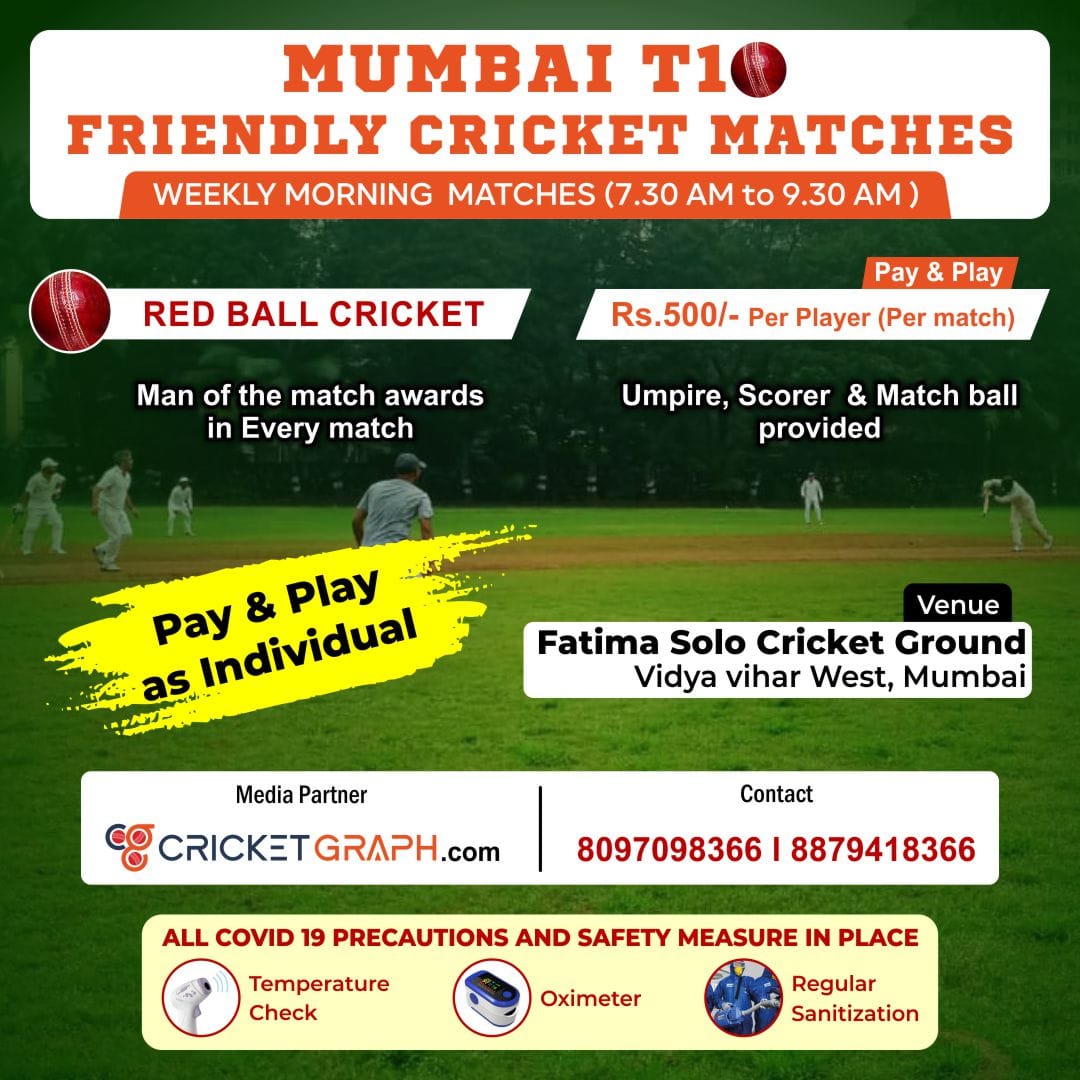 Click here to check Mumbai T 20 Friendly Cricket Matches (Weekday)