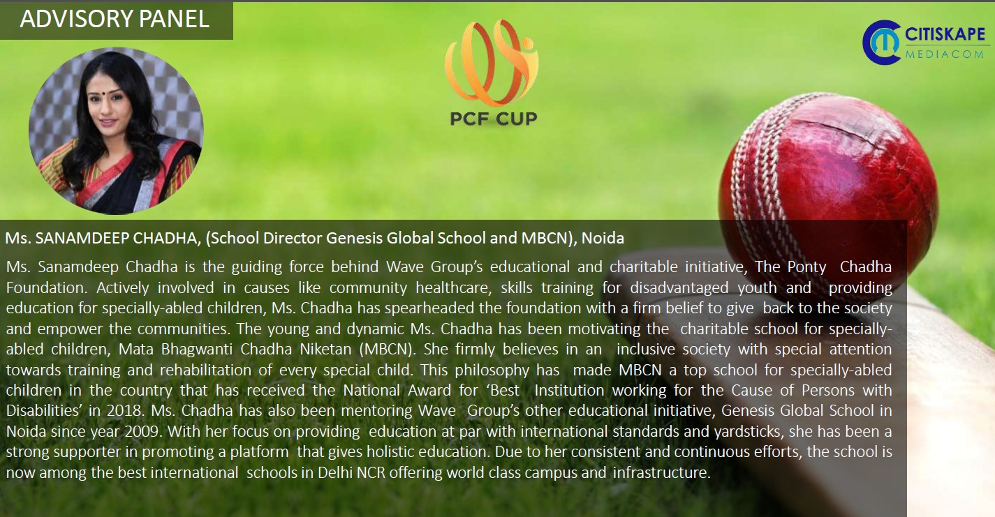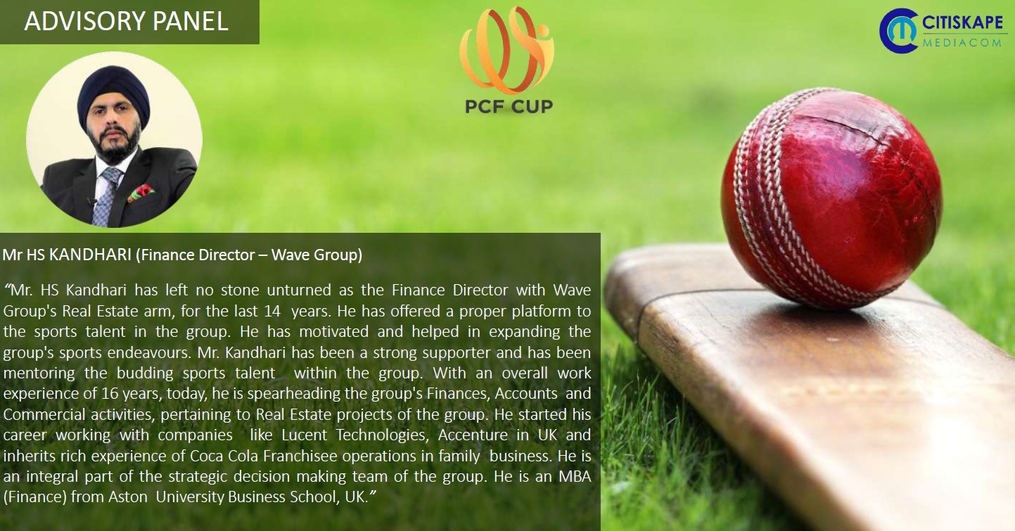 About PCF CUP – CRICKET The PCF cup is a pioneer sports tournament of Indian corporate world. It’s an initiative taken by Citiskape Mediacom and backed by ‘The Ponty Chadha Foundation’ (PCF) started and being run by one of the most prominent business house ‘Wave group’ in the memory of its founder Mr Ponty Chadha. An integral belief of the Wave Group is to give back and empower communities that it serves through its CSR arm The Ponty Chadha Foundation. The Foundation has been initiated