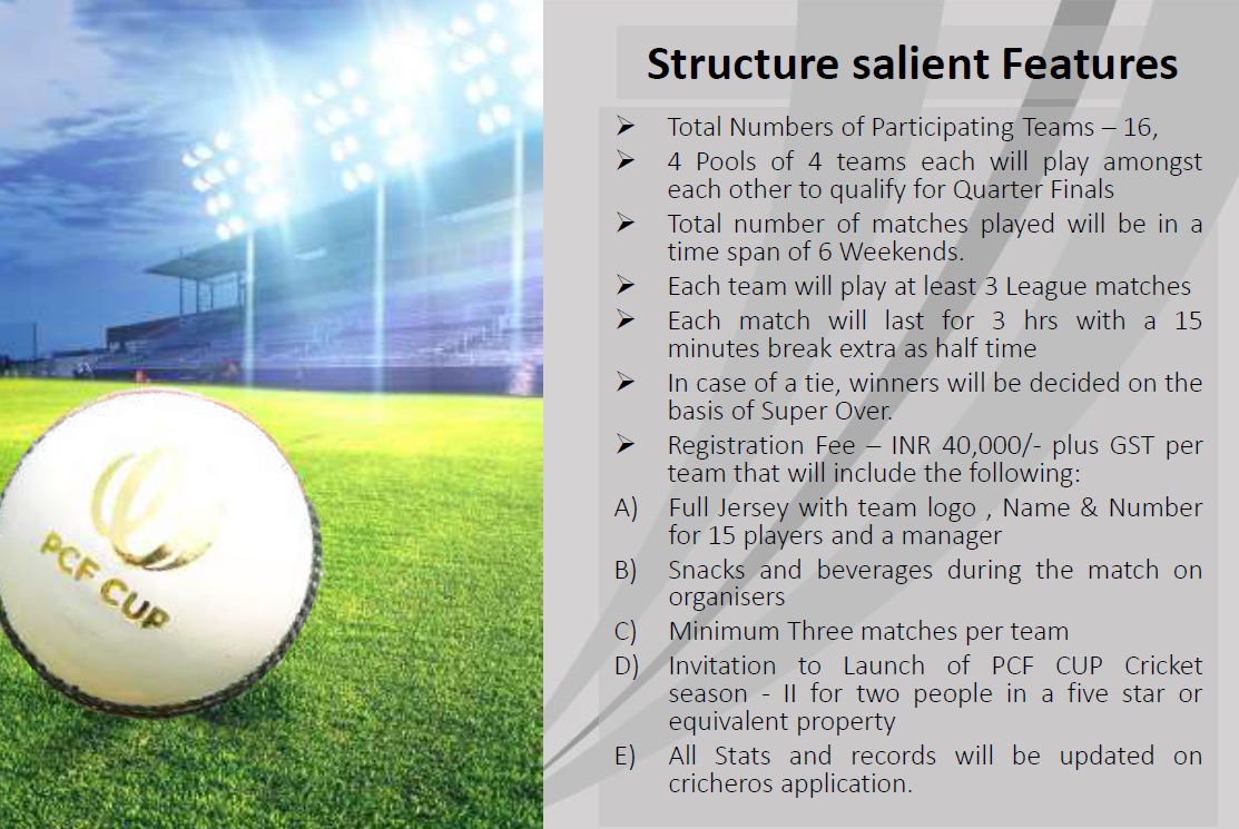 1. The PCF Cup- 2 nd Edition The Second PCF Corporate Cricket Cup -2020, will be hosted by Citiskape Mediacom (Sports and Events team) and the series would be conducted in accordance with the playing