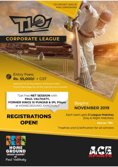 Home Ground by PAUL VALTHATY & ACE SPORTZ PRESENTS T-10 CORPORATE LEAGUE Matches begin from November Onward.