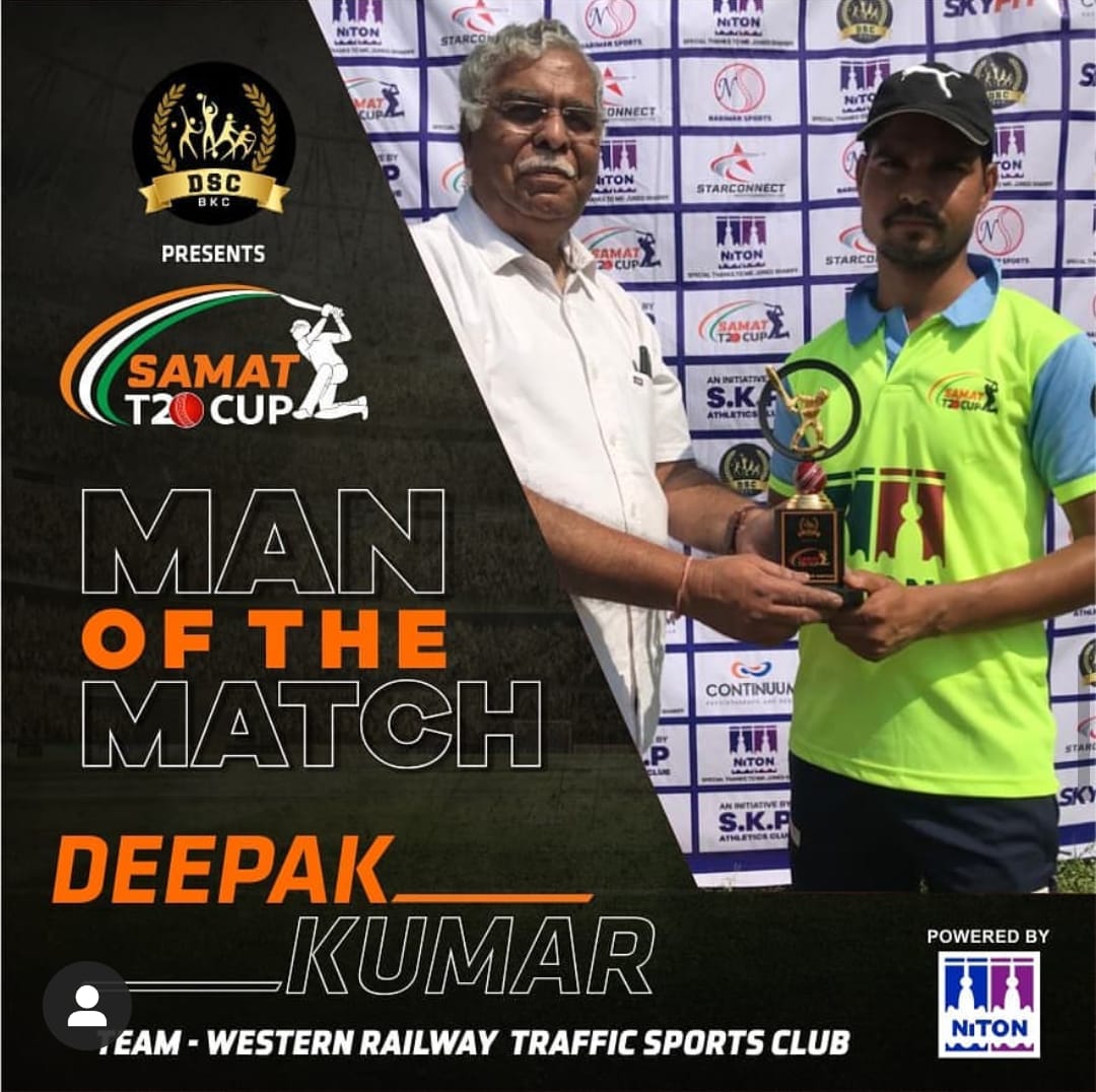 Bombay Mercantile in reply managed to score only 148/4 in 20 overs as Western Railways won the match by 34 runs while Deepak Kumar declared “Man of the Match”