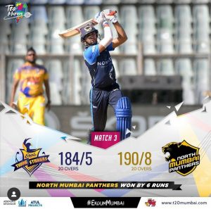 - North Mumbai Panthers-190/8 in 20 overs, Karan Nande 50, Sairaj Patil 46, Ankush Jaiwal 1/23, Sagar Mishra 1/25
