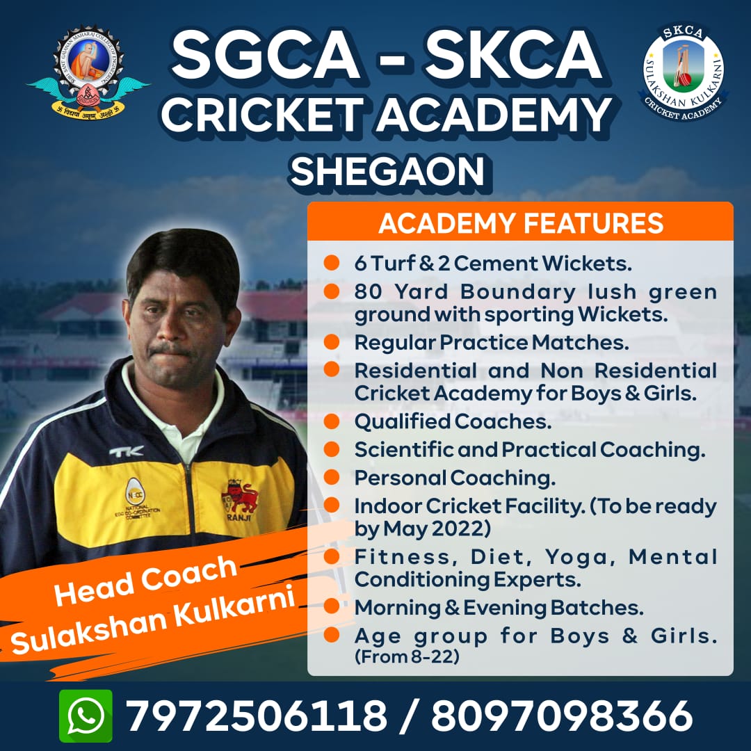 Head Coach of SGCA – SKCA Cricket Academy Shegaon –